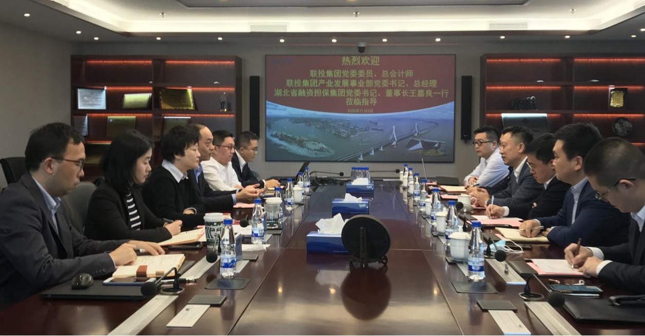湖北联投集团发展事业部产业招商中心总经理刘文杰、总监赵斌,湖北省融资租赁公司董事长姚奇林、总经理王松、运营总监姜一博,公司副总经济师、业务总监,业务五部和战略运营部相关负责人参加会谈。