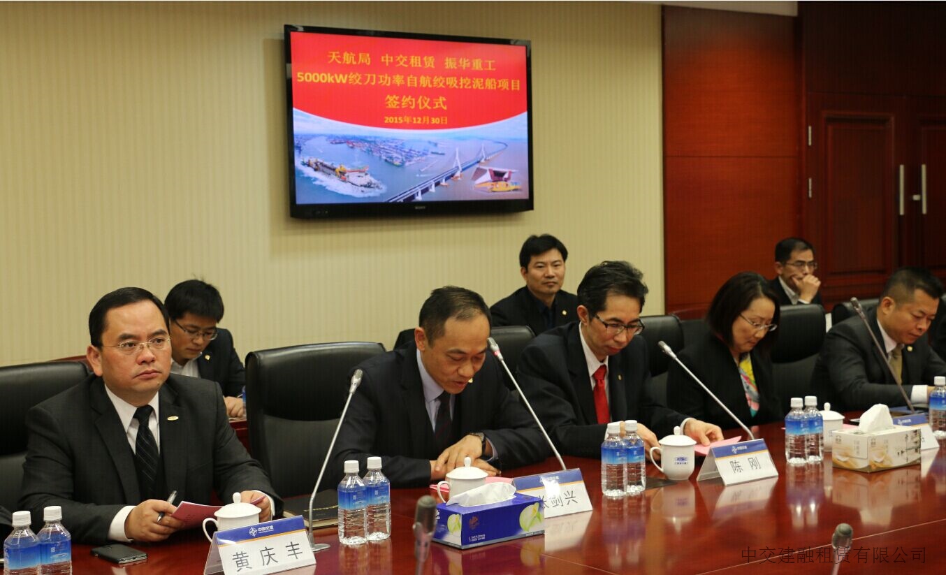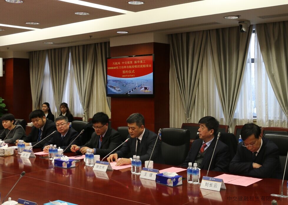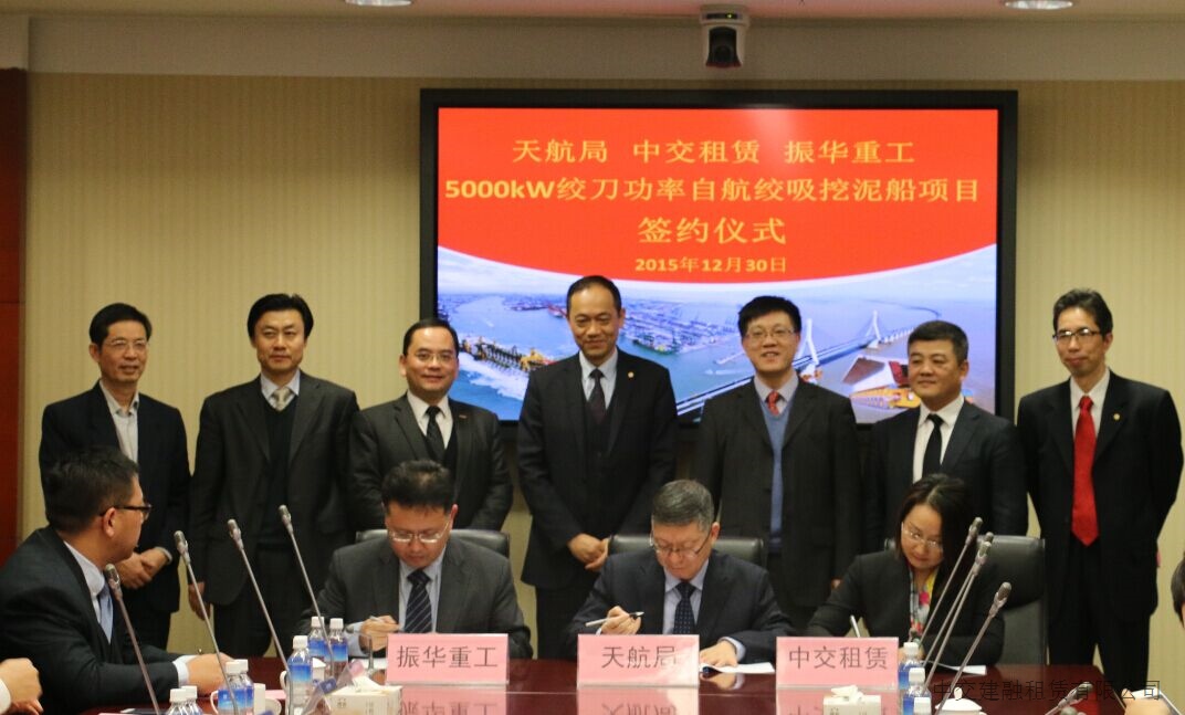 2015年12月30日,中交租赁与天航局、振华重工5000千瓦绞刀功率自航绞吸挖泥船建造、租赁项目合作协议签约仪式在上海举行,标志着中交租赁重大装备经营性租赁项目首单落地。中交疏浚集团财务总监刘军军,天航局董事长、党委书记钟文炜,振华重工董事、总裁黄庆丰,中交租赁董事长、党委书记张剑兴出席签约仪式并分别发表致辞。签约仪式由中交租赁董事、总经理、党委副书记陈刚主持。