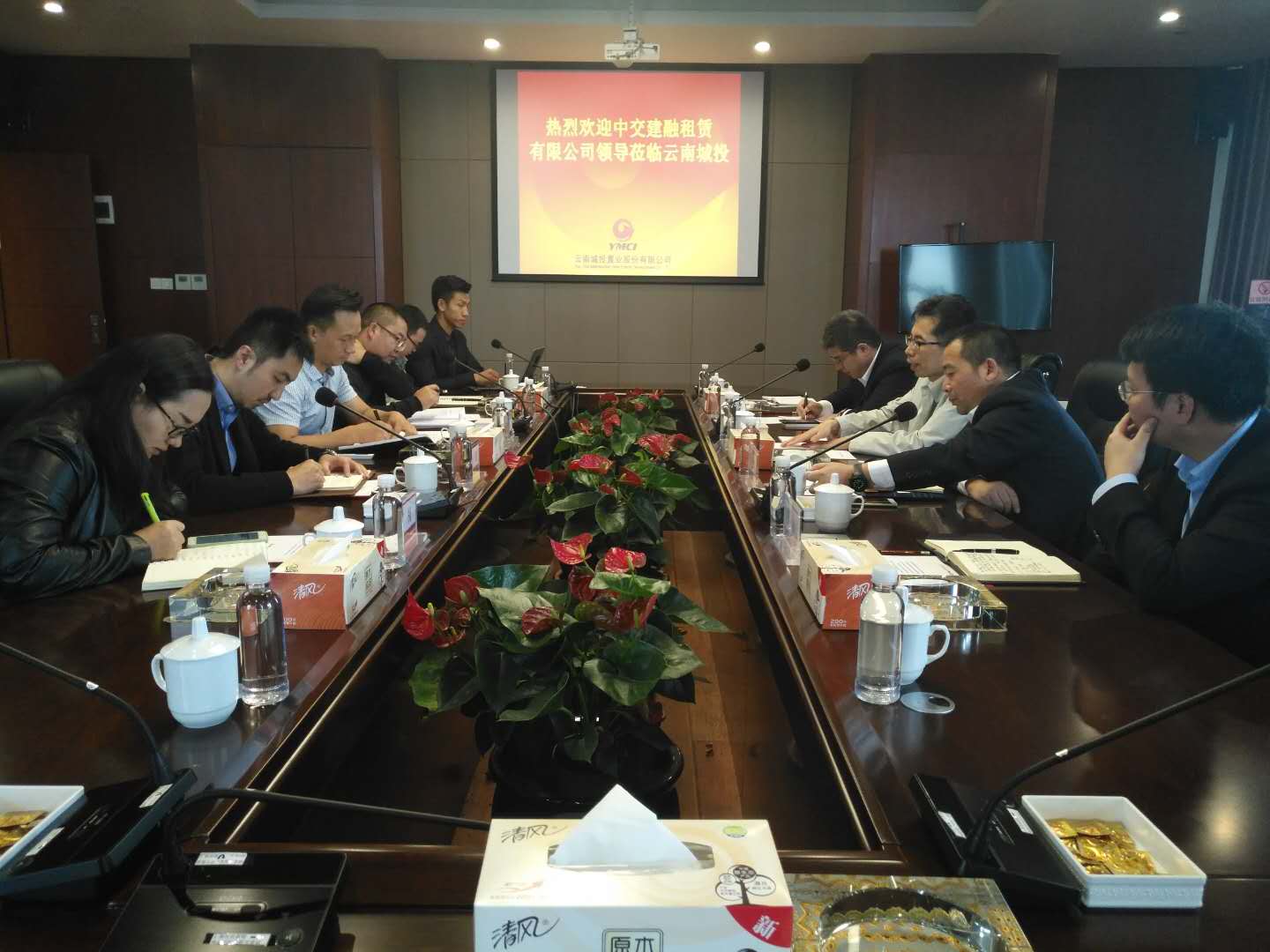 10月16日,公司总经理陈刚,党委副书记、纪委书记罗志宏,业务总监夏勇一行赴昆明与云南城投置业股份有限公司对接交流。云南城投置业股份有限公司党委书记、副总经理袁浩参加会谈。