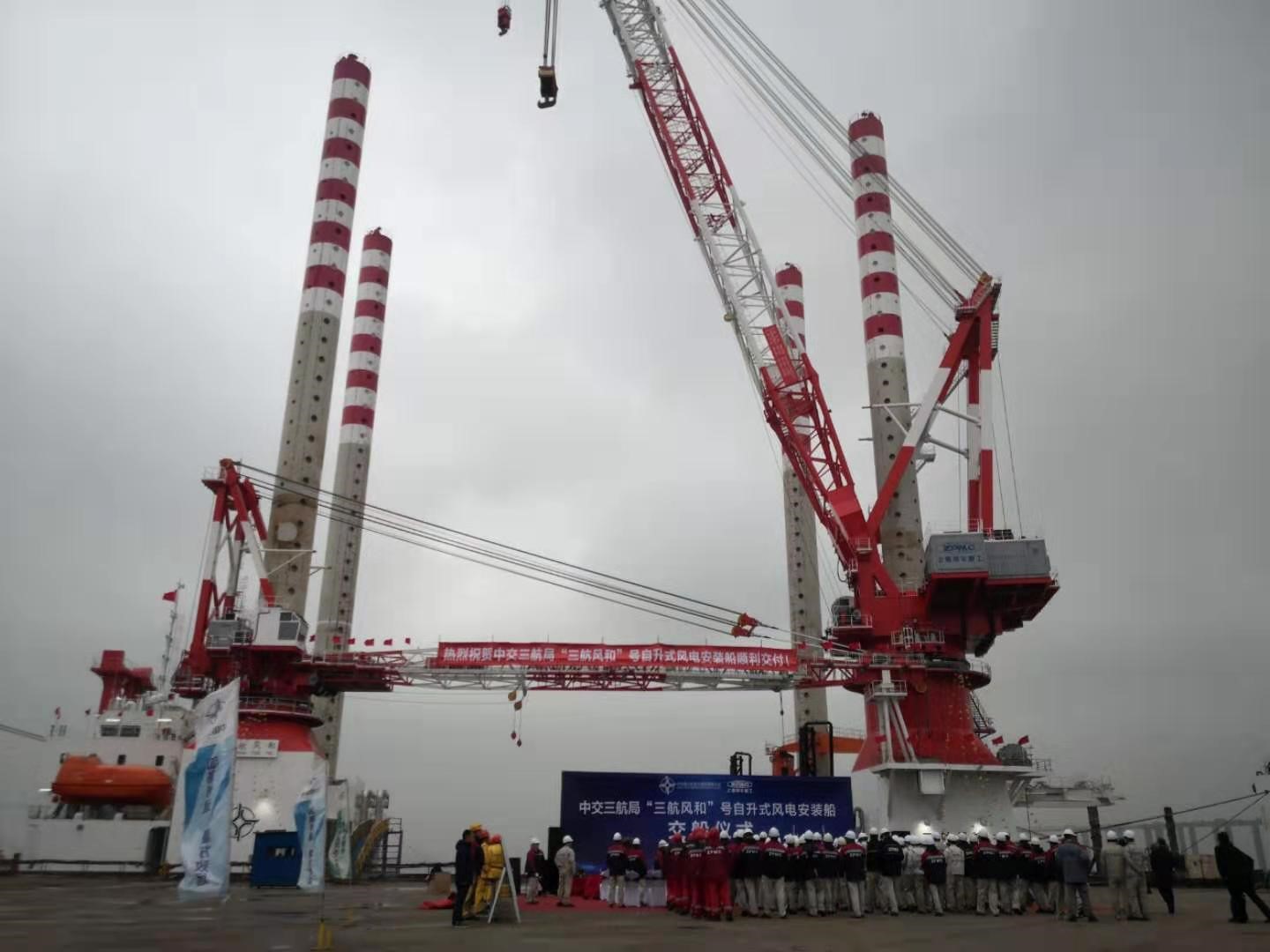 1226日,由公司提供融资服务的中交三航局1200吨自升式风电安装船三航风和号,在上海振华重工南通基地举行交船仪式,标志着国内领先的第三代风电安装船正式诞生。中交三航局副总经理王伟明,振华重工副总裁戴文凯,中国船级社江苏分社副总经理张东标,公司总经理助理、业务总监及有关部门负责人出席交船仪式。
