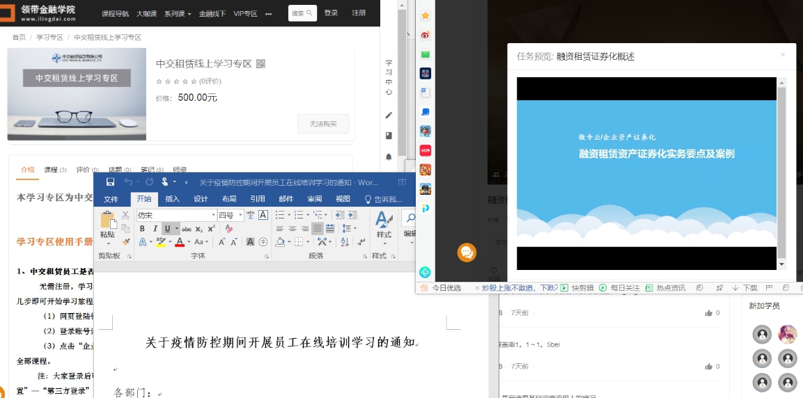 抓好专业培训。面向全员推出定制化、菜单式的在线学习课程,内容涵盖财务基础、平台投融资案例解析、债权ABS产品设计等三大类课程体系、40段微课视频,让员工在疫情防控特殊时期,也能宅在家中“闭关”修炼。